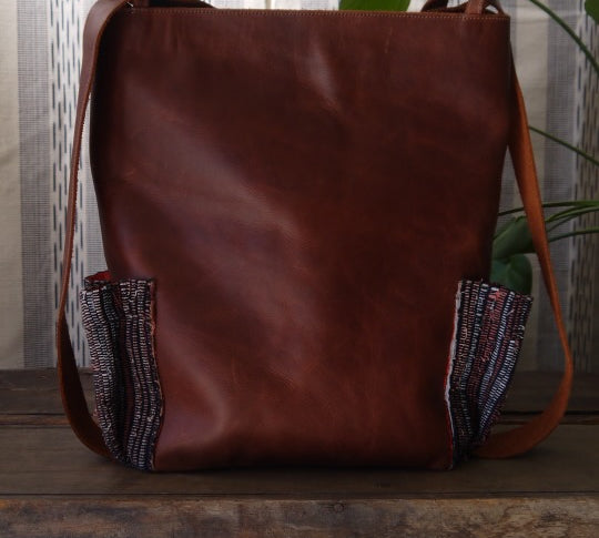 Patzik - Black and White Mayan Star Pockets - Tan Leather