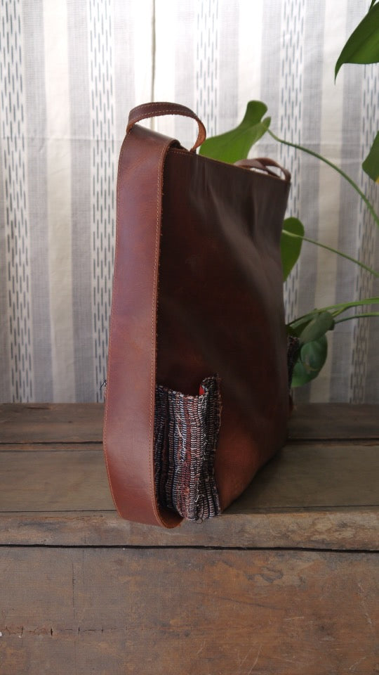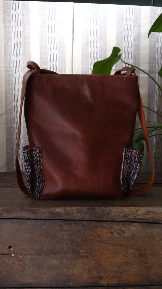 Our Patzik convertible backpack/tote is made with 100% hand woven organically dyed cotton and genuine leather. Designed with flexibility and simplicity in mind, our limited convertible backpack collection offers two different wearing styles to suit your needs. This bag can either be packed up as a backpack, or dressed up as a tote. By carrying this bag you are prolonging the life and culture of Guatemala. Further, each bag is signed by the artisan who constructed it.
