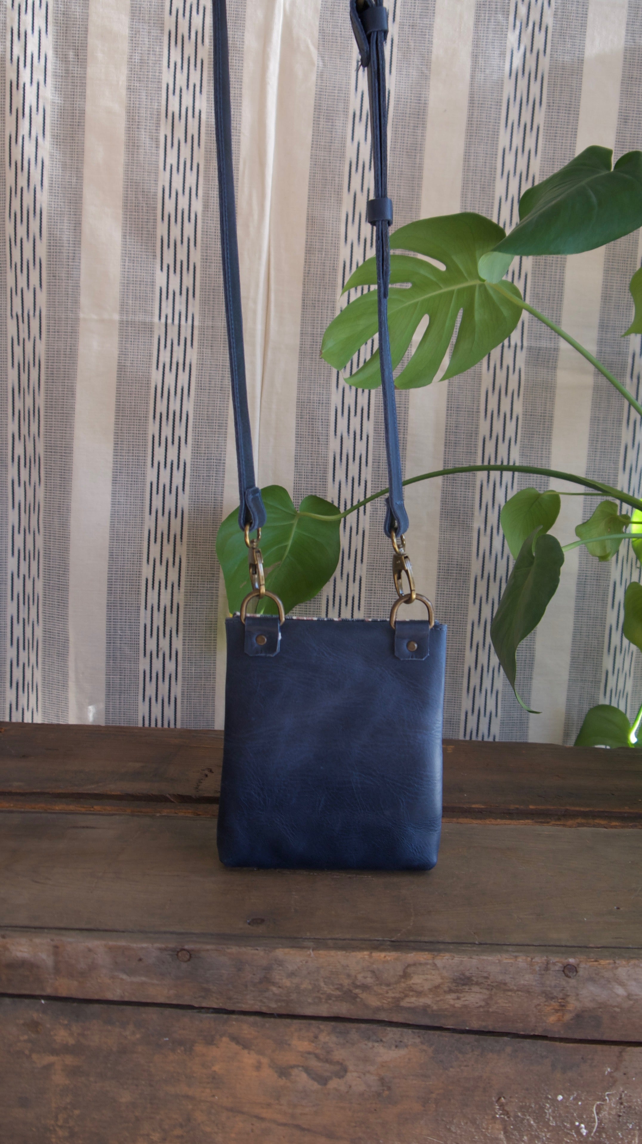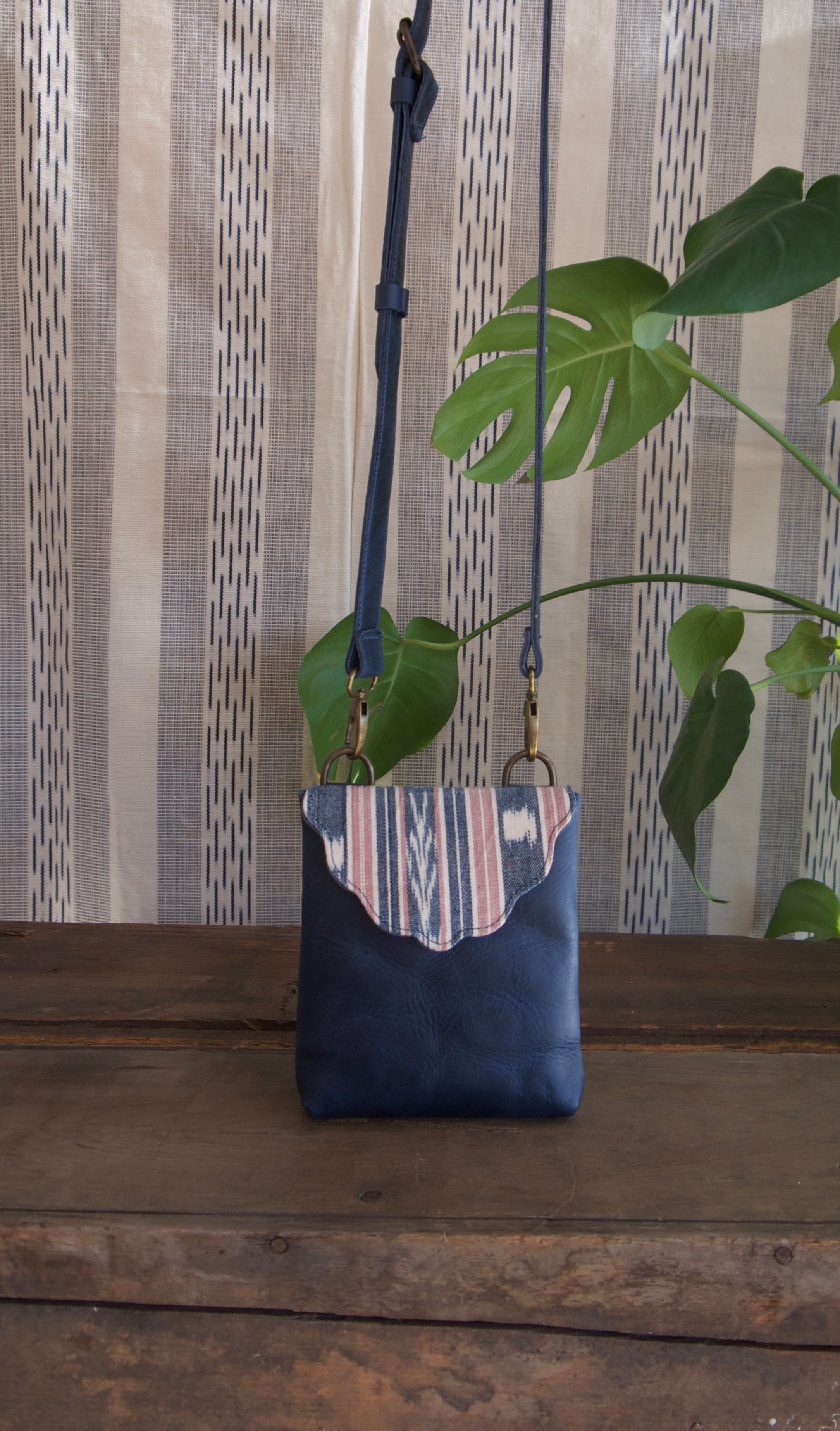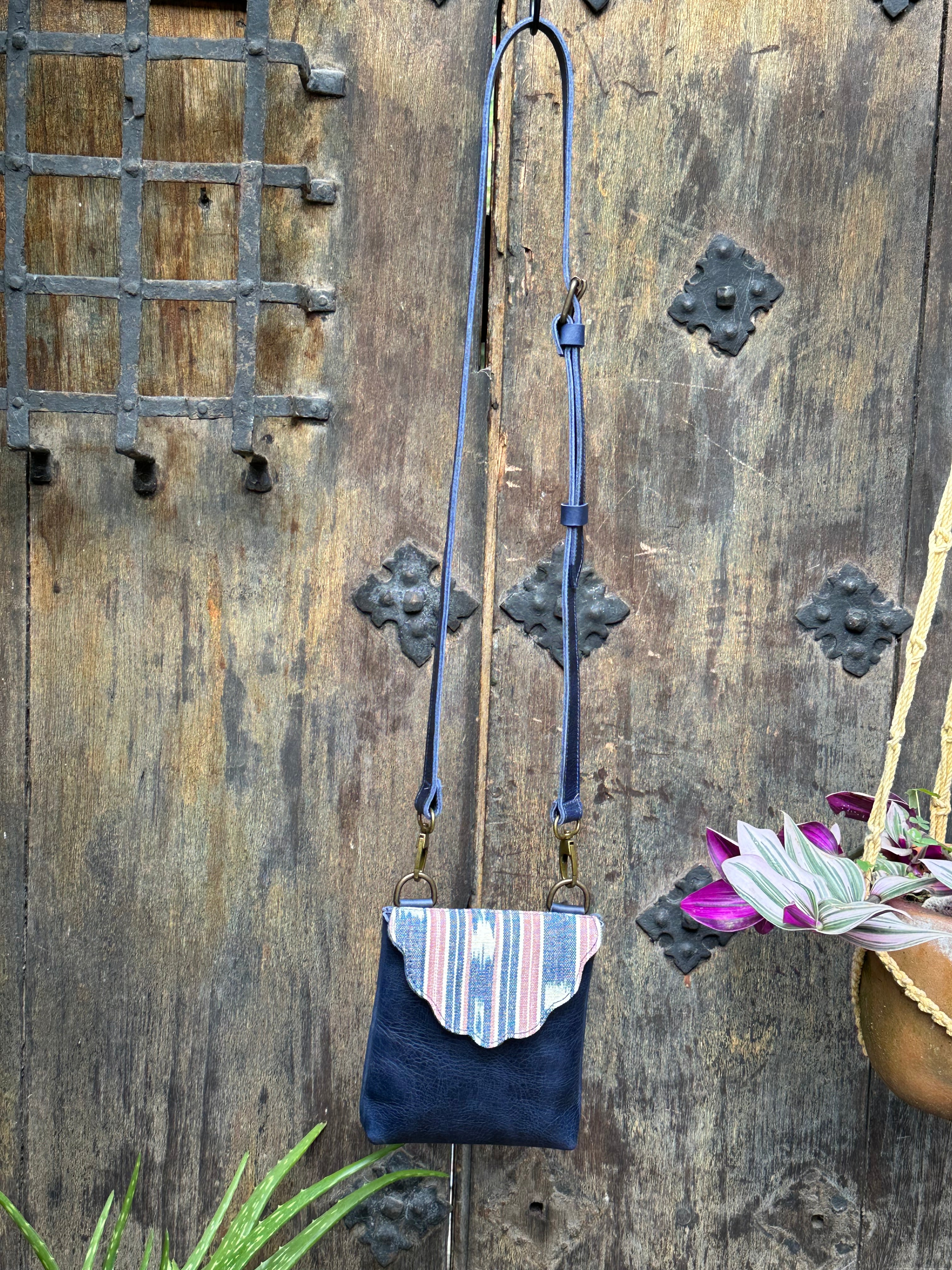 The perfect little crossbody bag to hold the essentials, your phone, wallet, and keys. With a removable crossbody strap. So, you can interchange with one of our woven, beaded, or hair on hide straps for some extra flair. Handmade with full grain leather, and foot loomed, and a weaving.