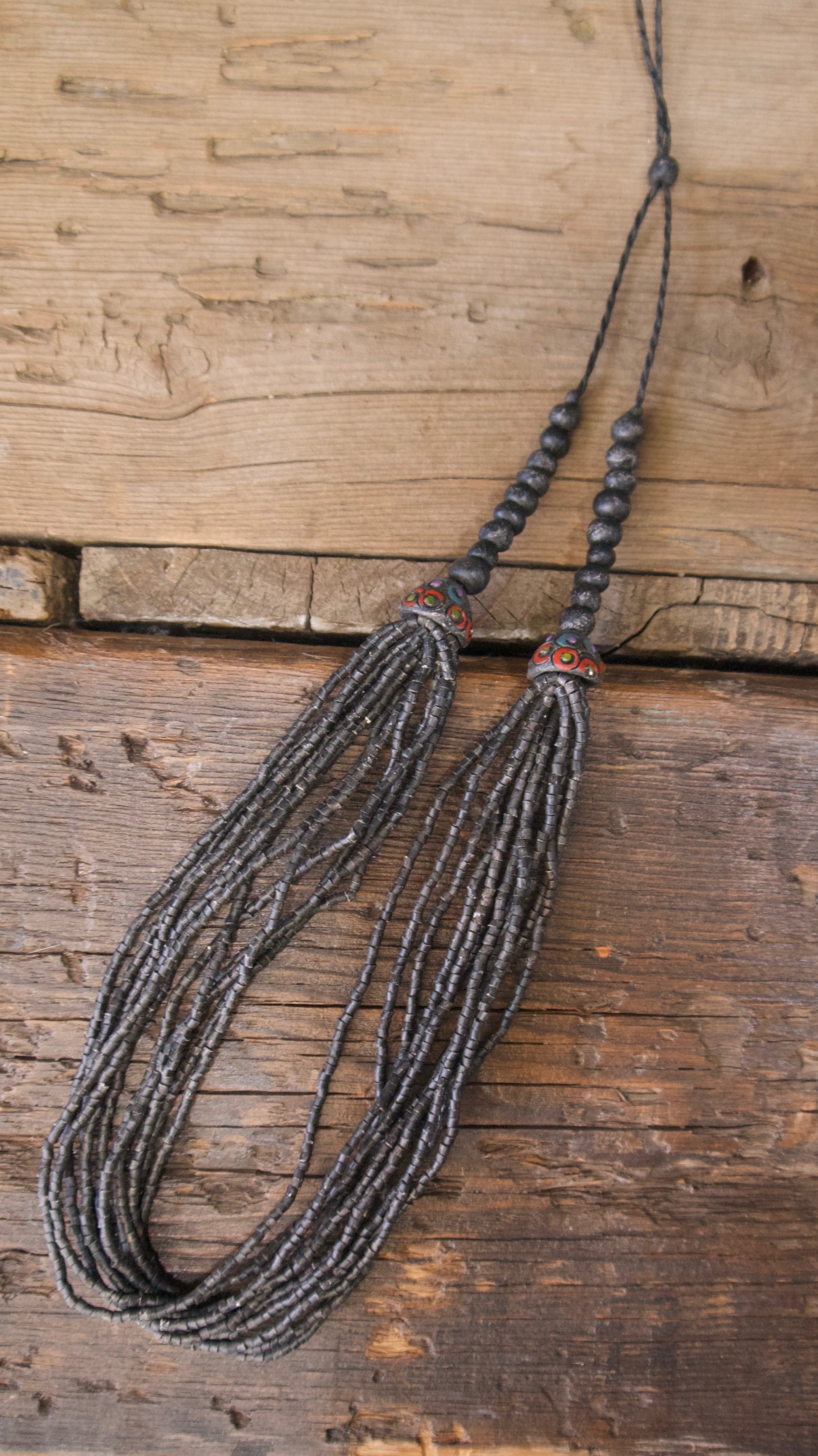 Our Solola necklace is made with hand painted ceramic beads. They can be dressed up or down and have an adjustable length.