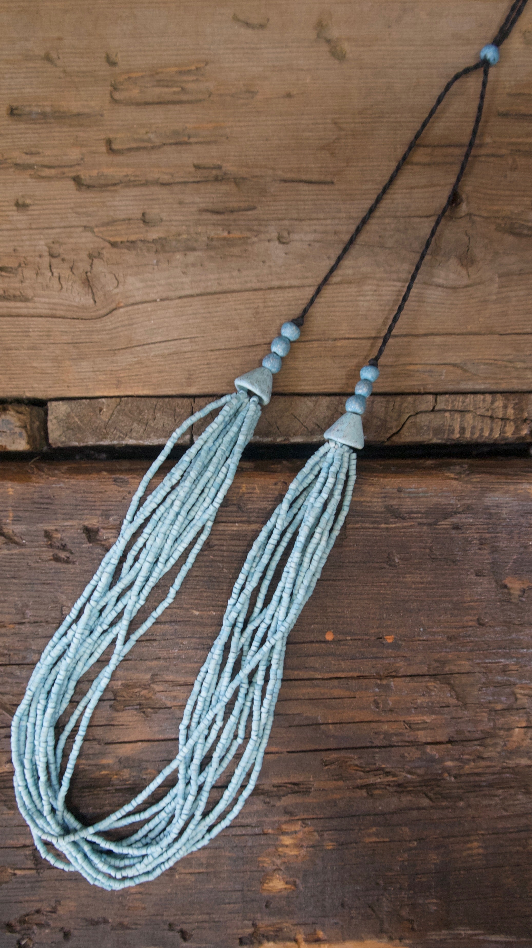 Our Solola necklace is made with hand painted ceramic beads. They can be dressed up or down and have an adjustable length.