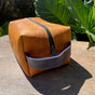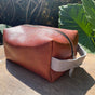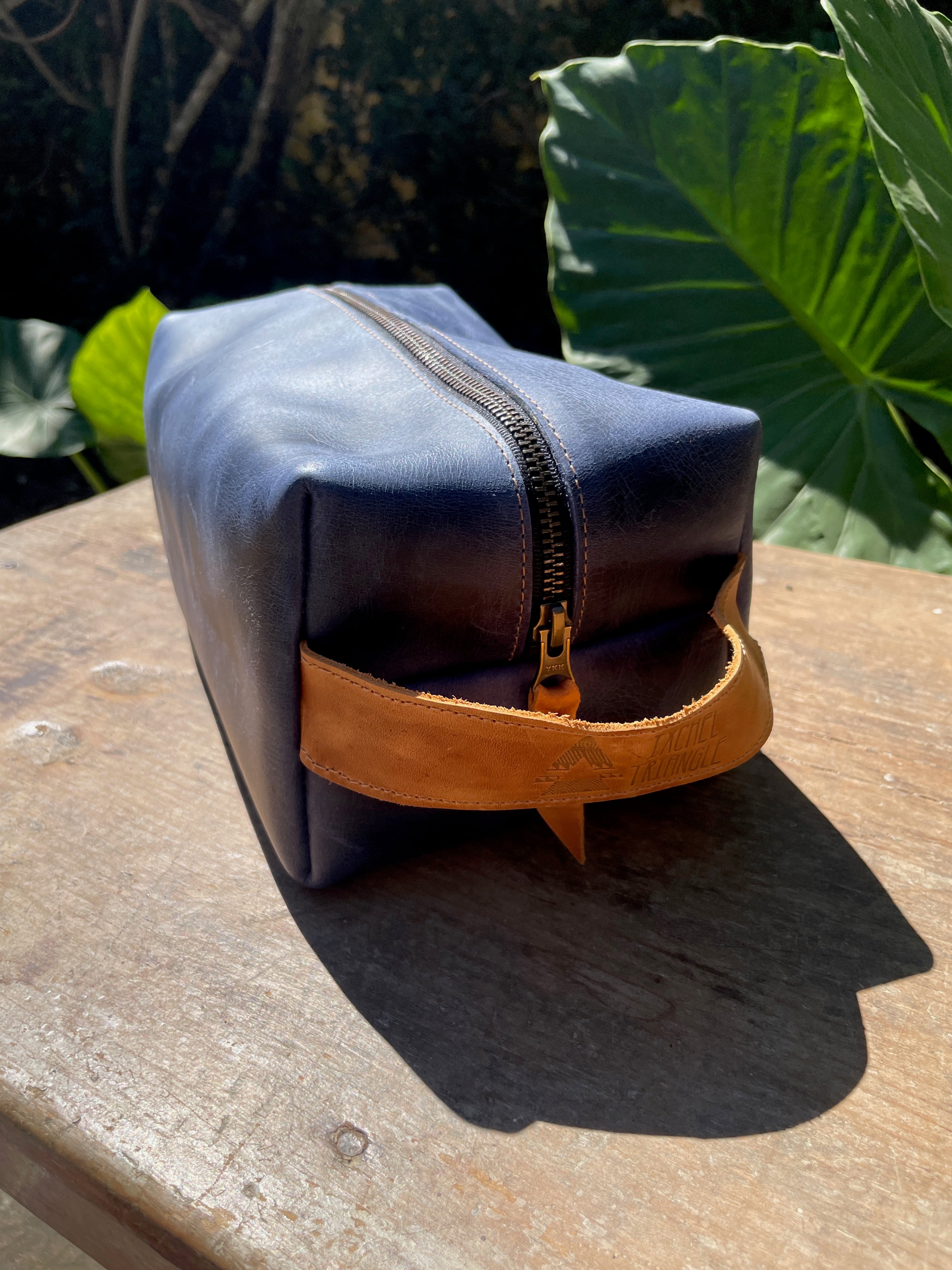 Meticulously designed for wanderers, our Dopp Kit boasts ample space to house your essentials seamlessly. Every inch is a testament to the artisan's dedication, meticulously handcrafting each detail. Crafted from genuine full hide leather, its touch is not just soft but a reminder of true craftsmanship. What sets it apart is its untouched beauty – no artificial coverings, only authentic imperfections and organic color shifts that enhance its character.