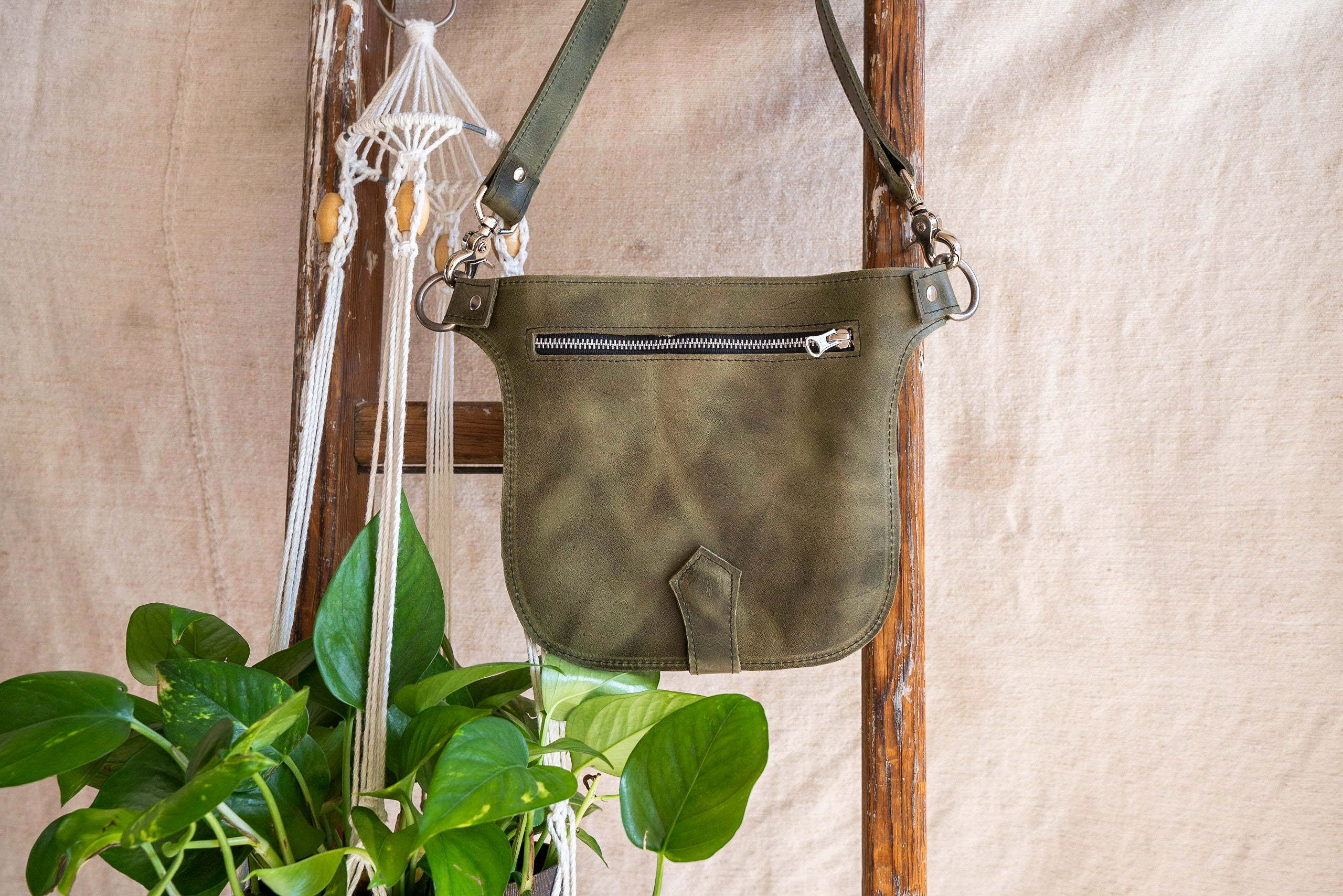 Made for life in motion, our Awabal hip satchel is crafted from thoughtfully and locally sourced Guatemalan full grain leather with hand-sewn details. Each satchel comes with a removable/adjustable strap that can be worn comfortably around your waist or as a cross body strap. Keep things secured with a back zippered pocket and a snap closure front pouch.
