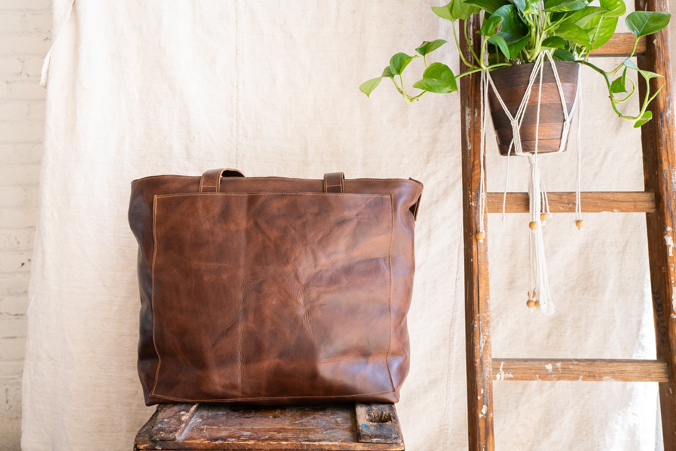 The Explorer is made to carry your portfolio,laptop, weekend getaway needs, or all of the above. Its our largest and most durable bag . It is made with genuine full grain leather.