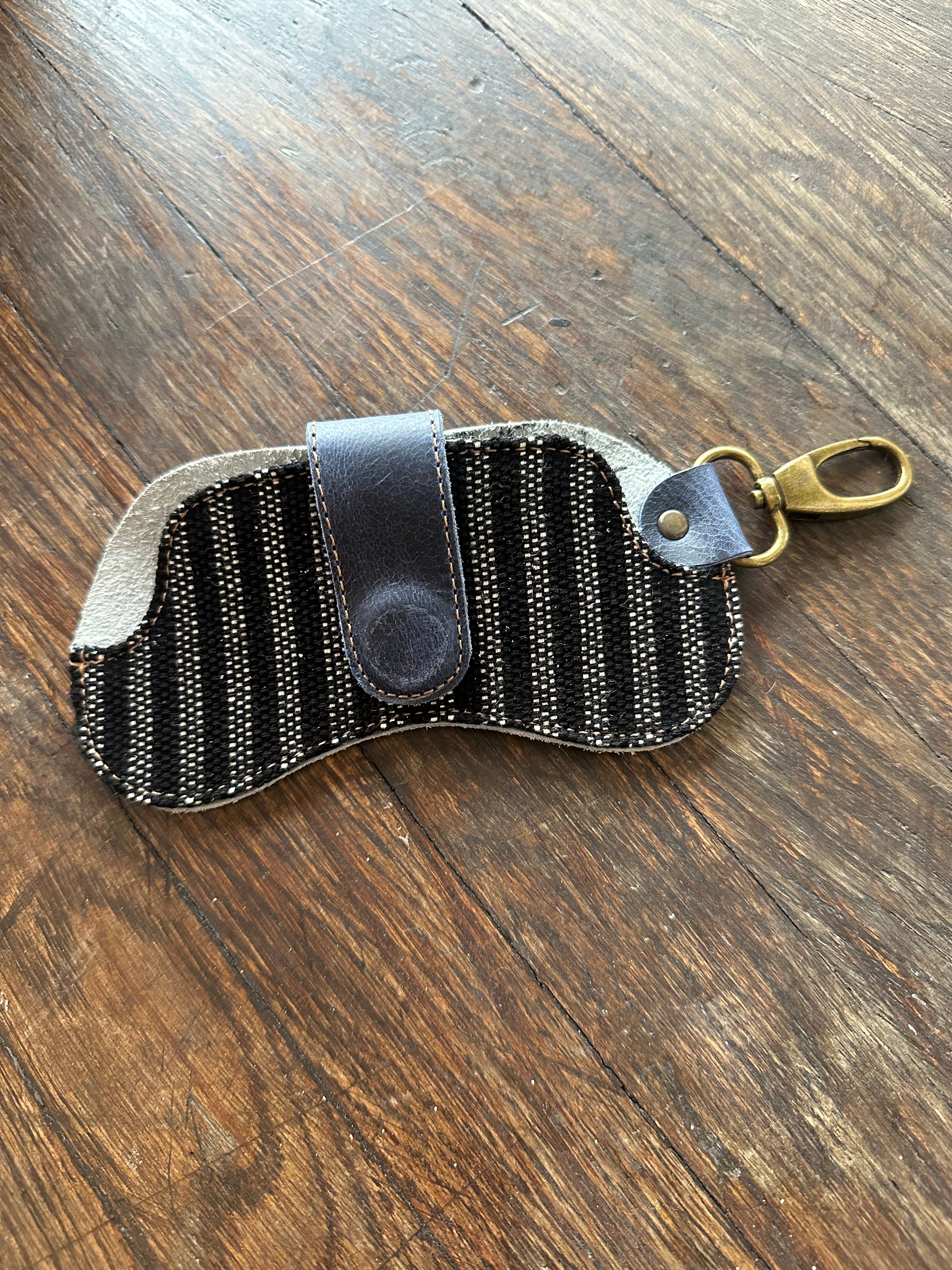 Your glasses new favorite friend. Our sunglass case has a magnetic flap to secure your glasses in place. With a handy clasp to attach them to your bag (or wherever you want). Handmade with full grain leather, and naturally dyed foot loomed weavings.