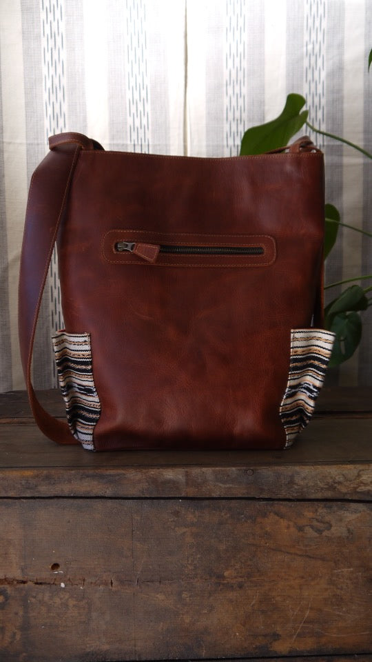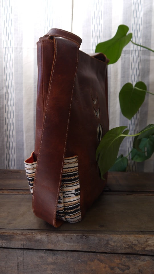 Our Patzik convertible backpack/tote is made with 100% hand woven organically dyed cotton and genuine leather. Designed with flexibility and simplicity in mind, our limited convertible backpack collection offers two different wearing styles to suit your needs. This bag can either be packed up as a backpack, or dressed up as a tote. By carrying this bag you are prolonging the life and culture of Guatemala. Further, each bag is signed by the artisan who constructed it.