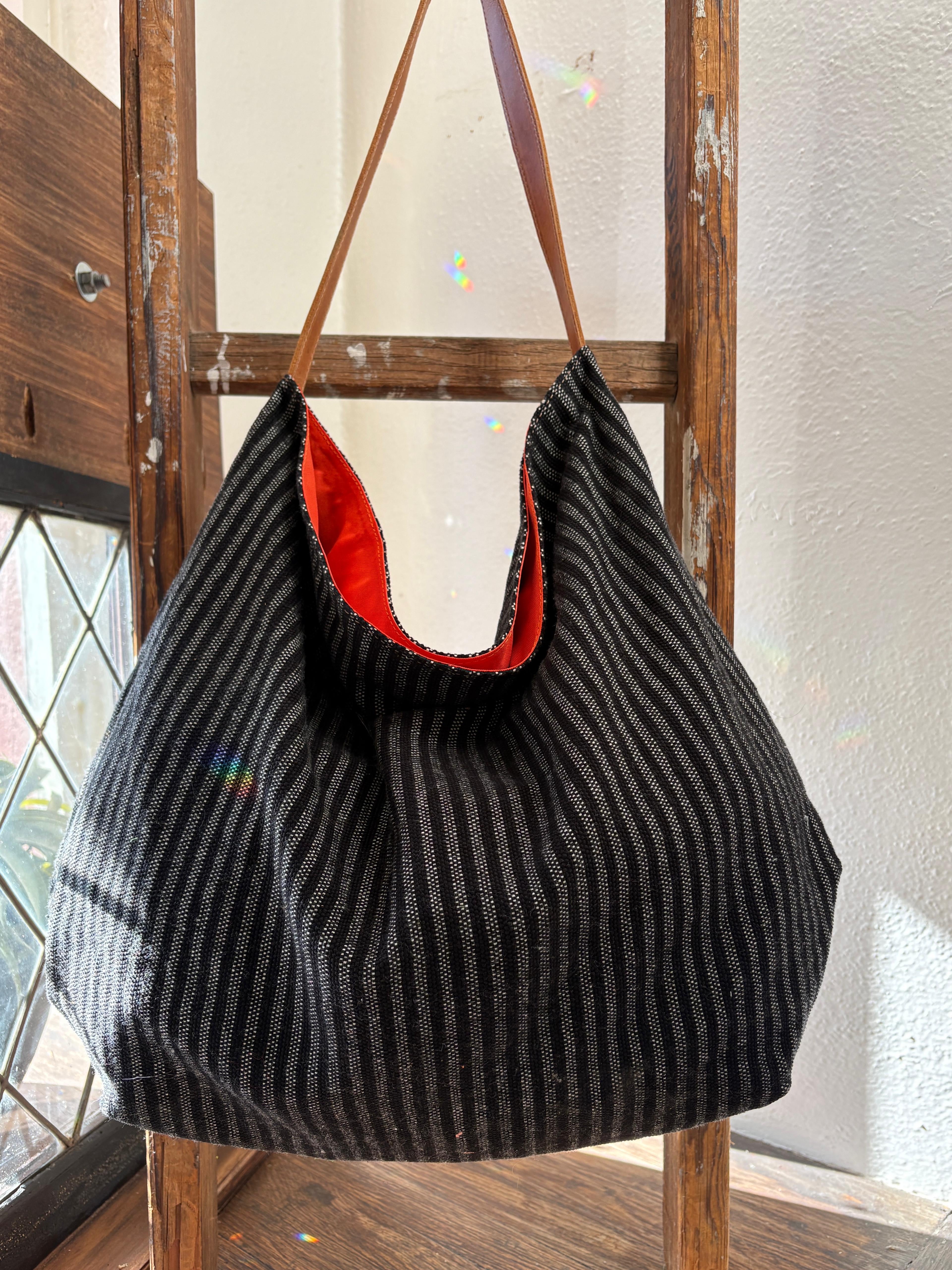 My favorite thing about our Market Totes is how nice and roomy they are, while still being super lightweight. Perfect for a day at the beach, grocery shopping, or just running around town. Each tote is made from one of our custom naturally dyed, foot loomed weavings, a full grain leather shoulder strap, with a hidden magnet at the top.