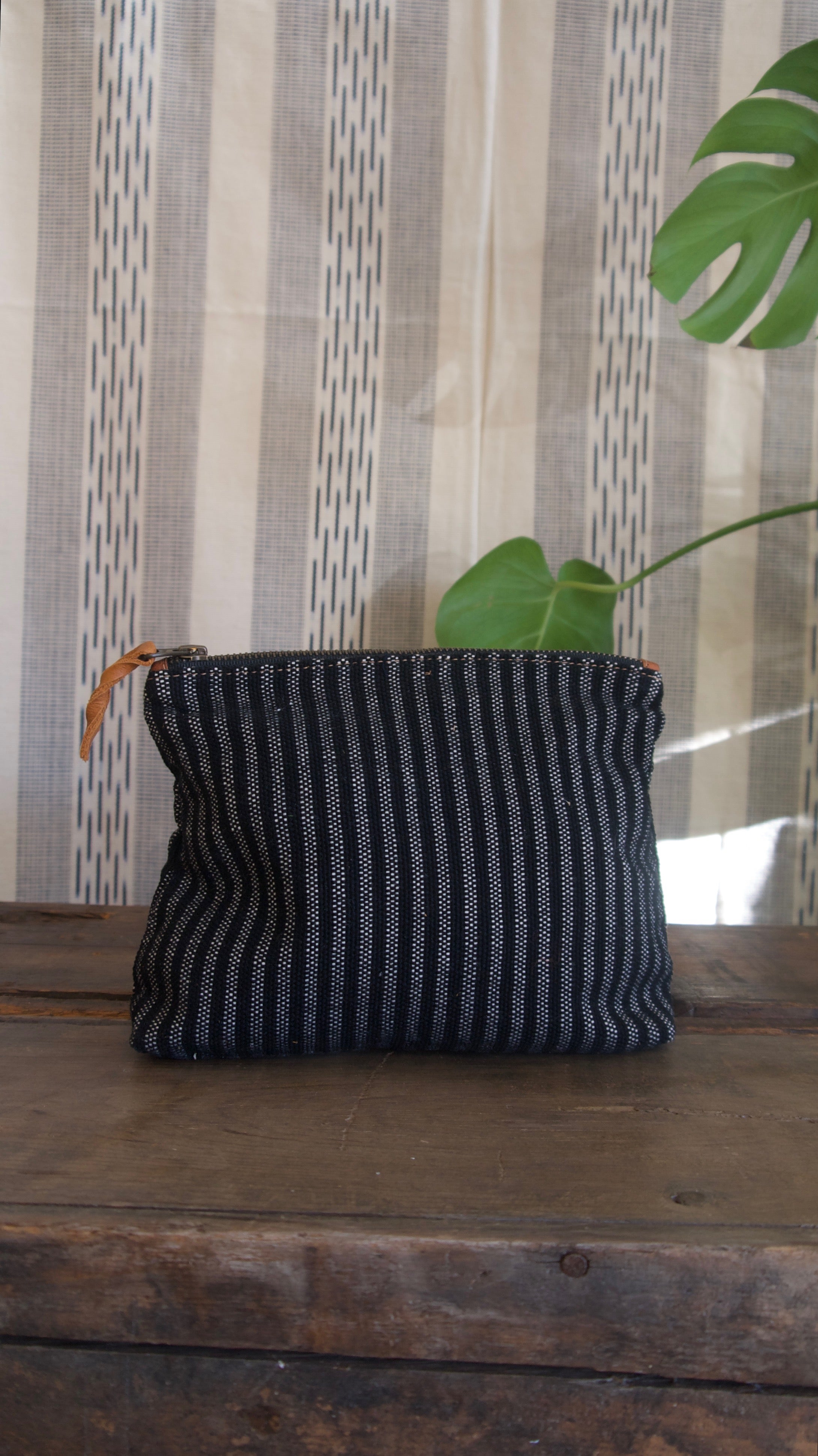 Handmade from one of our uniquely designed foot loomed weavings. The perfect size for your on the go needs. Cosmetic bag, toiletries, or anything else you need to organize and throw inside your bag or tote.