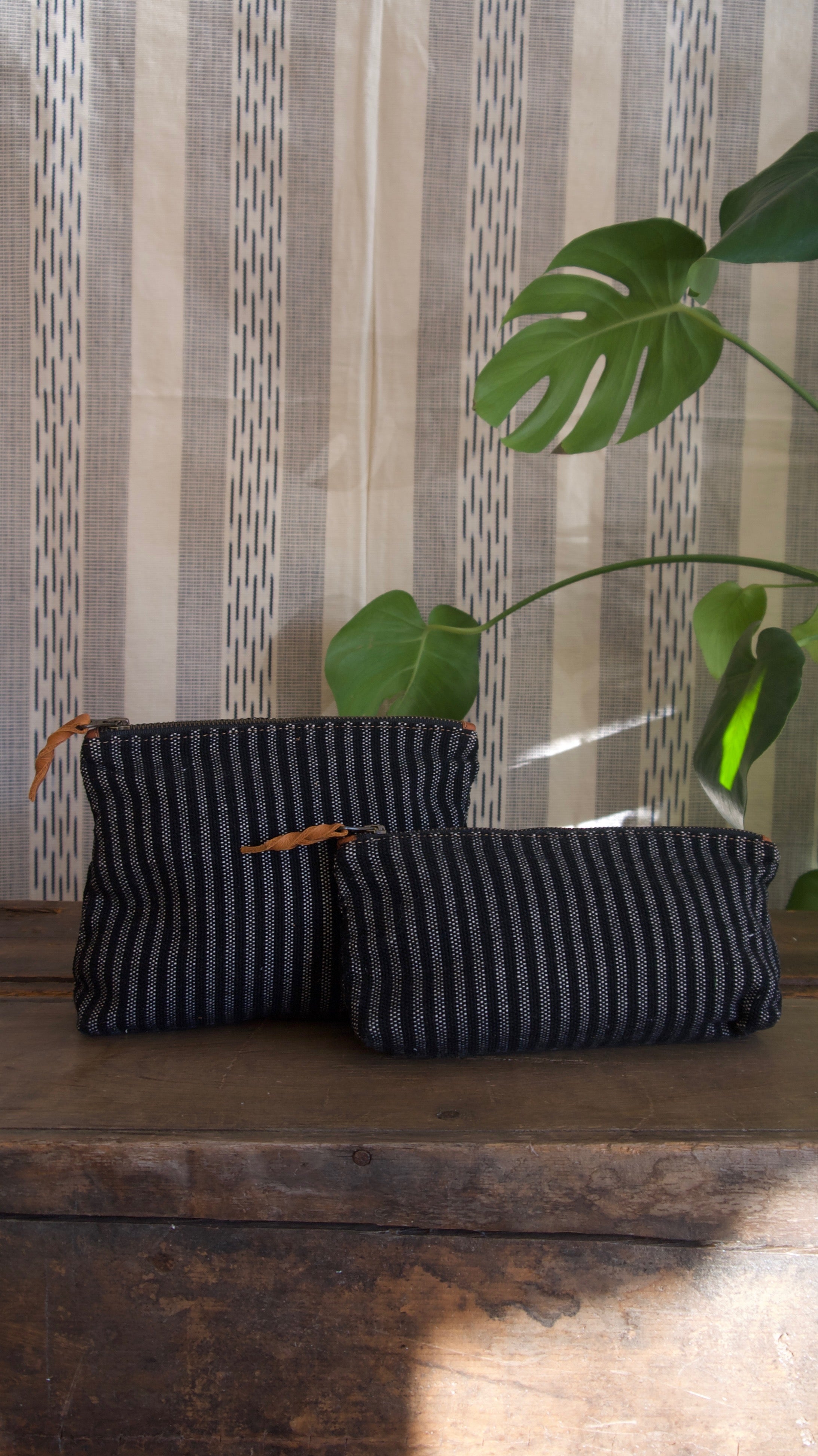 Handmade from one of our uniquely designed foot loomed weavings. The perfect size for your on the go needs. Cosmetic bag, toiletries, or anything else you need to organize and throw inside your bag or tote.