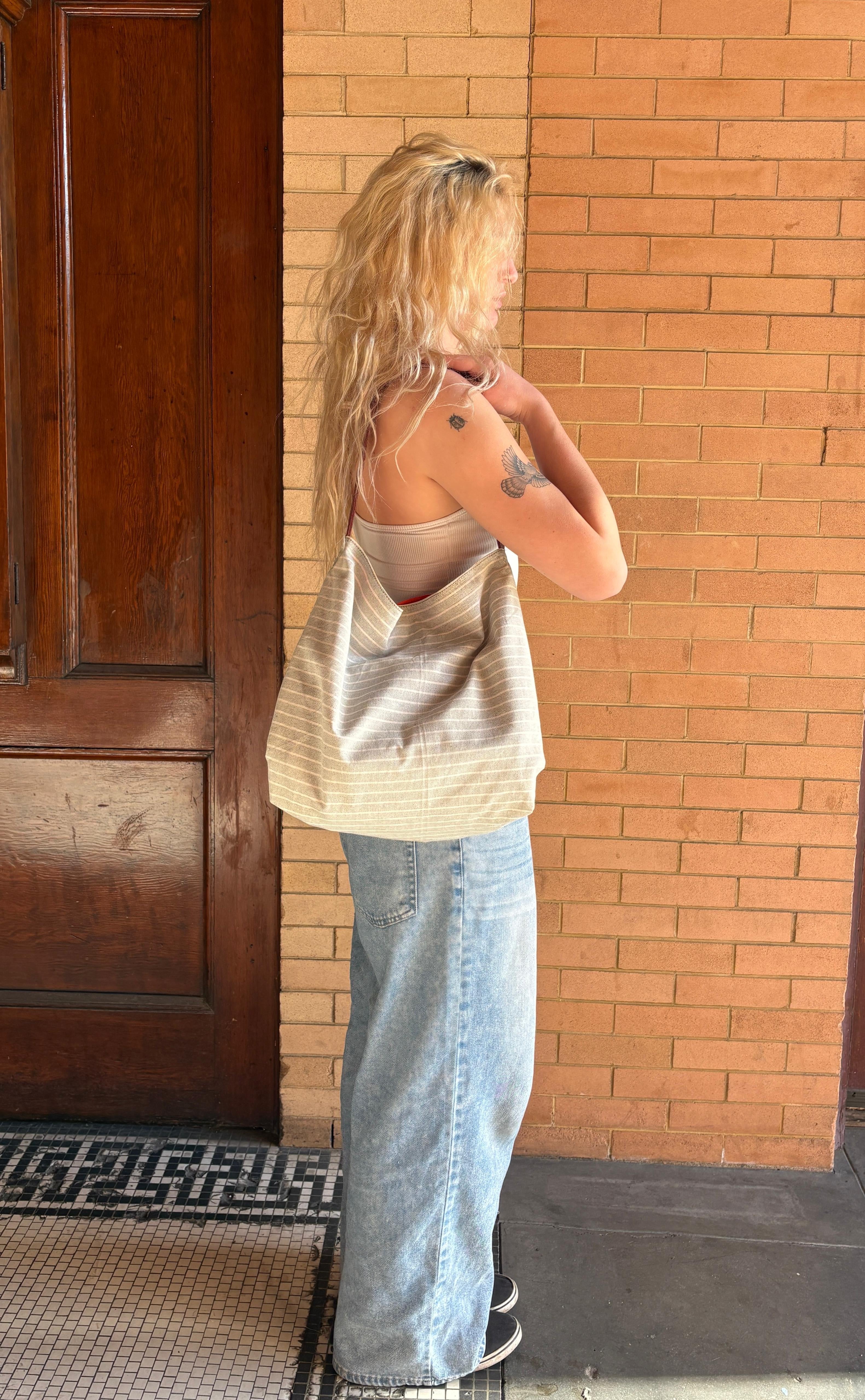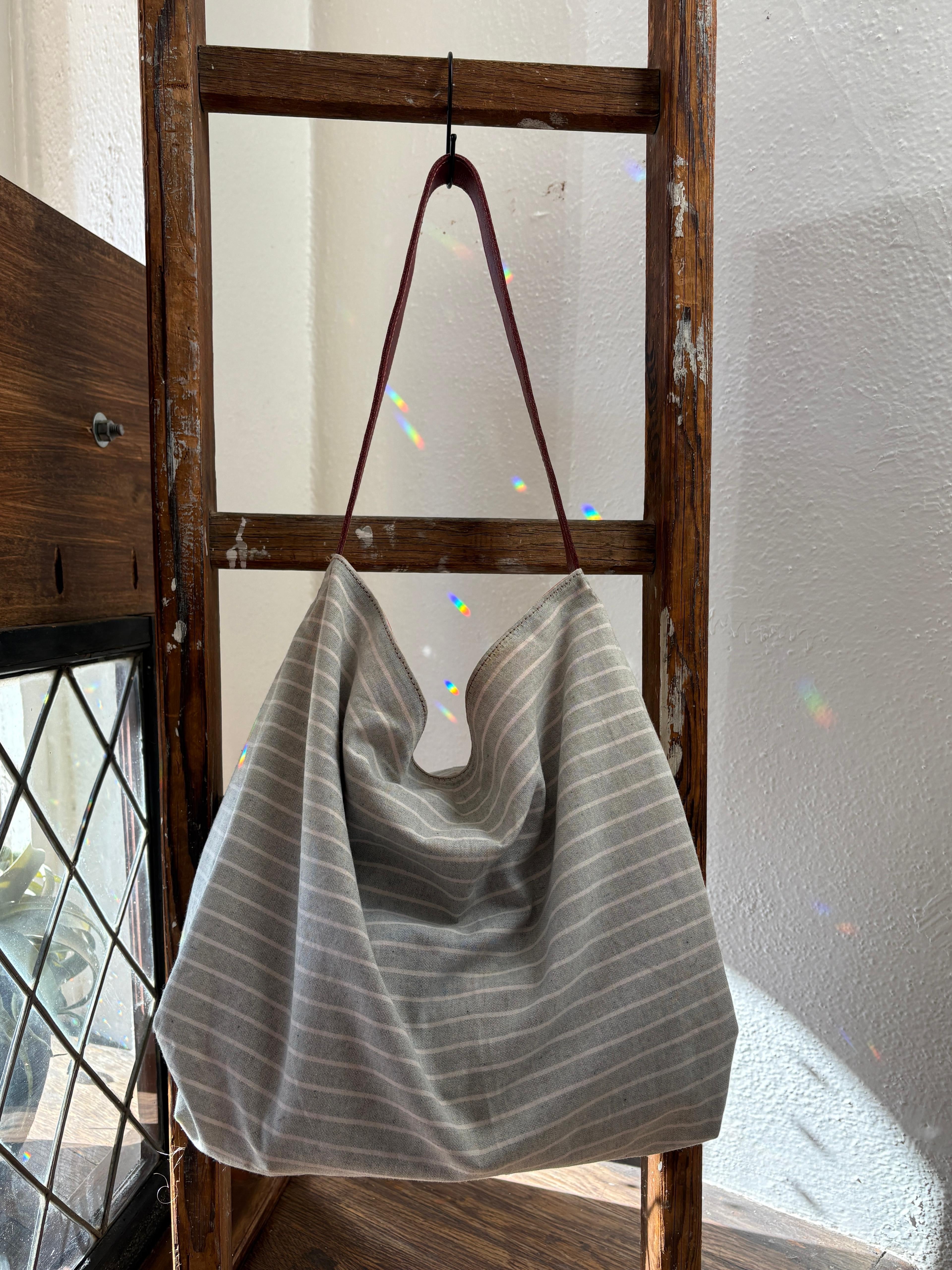 Su't Tote Market Bag - Gray and White Striped