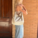 My favorite thing about our Market Totes is how nice and roomy they are, while still being super lightweight. Perfect for a day at the beach, grocery shopping, or just running around town. This tote is made from up-cycled, and rewoven denim, from our friends at The New Denim Project. With a full grain leather shoulder strap, and a hidden magnet at the top.
