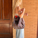 My favorite thing about our Market Totes is how nice and roomy they are, while still being super lightweight. Perfect for a day at the beach, grocery shopping, or just running around town. Each tote is made from one of our custom naturally dyed, foot loomed weavings, a full grain leather shoulder strap, with a hidden magnet at the top.