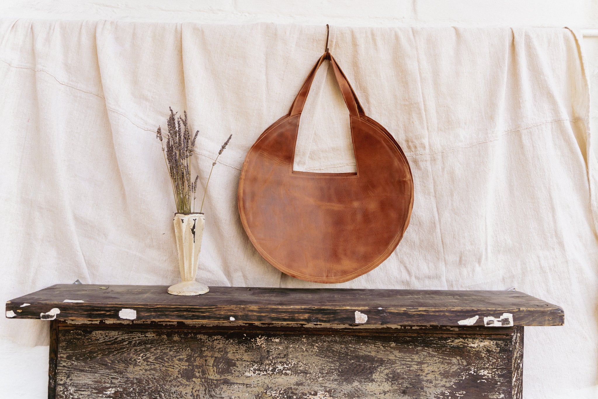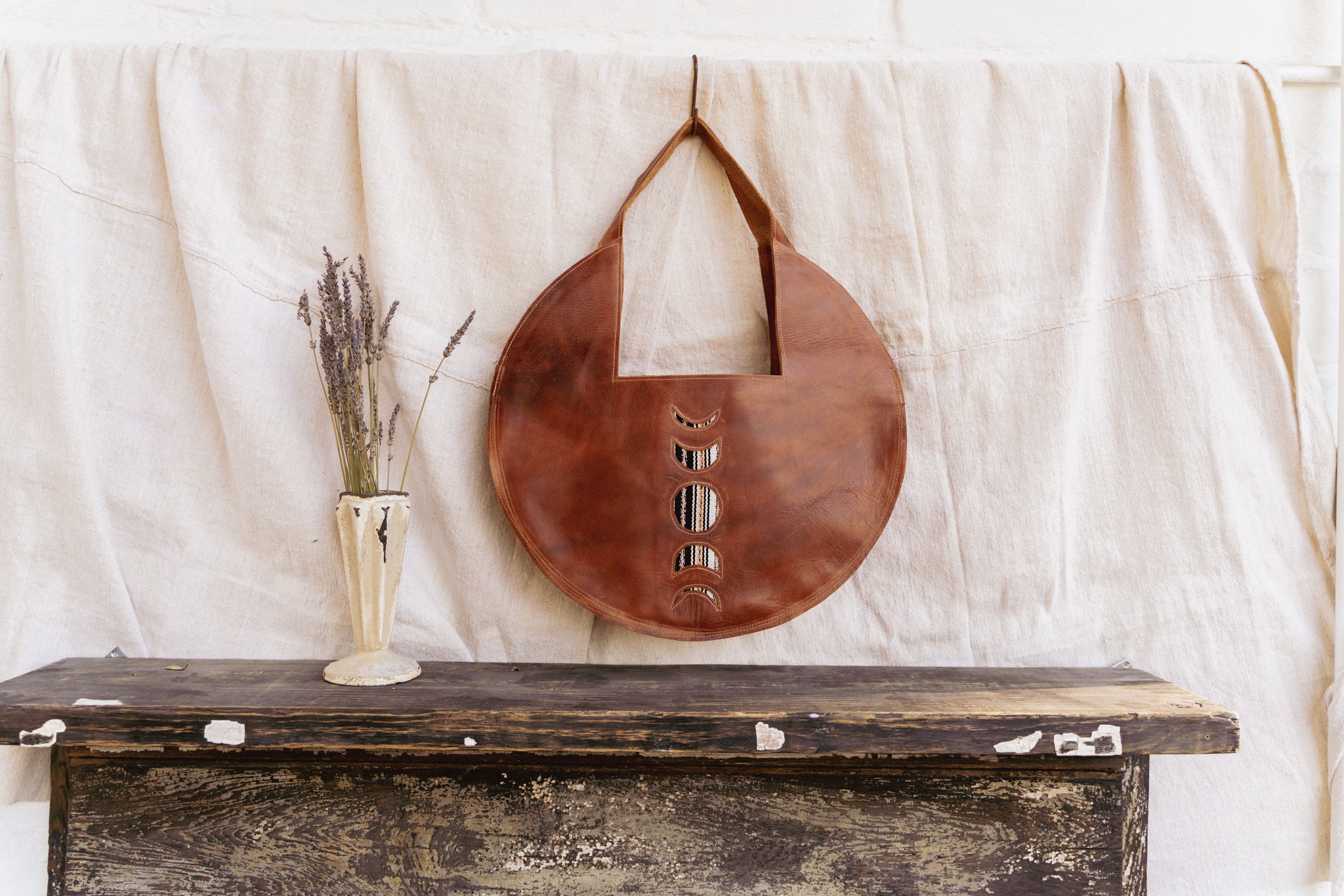 Perhaps our most unique bag, we now offer our Sutim Bag fashioned with our signature "Moon Phase" leather cut-out + weaving. This unique genuine full grain leather tote is functionally stylish. The round shape is feminine and modern, yet classy. The slim width is comfortable to carry yet large enough for all your essentials plus more. With internal D rings to attach a bag strap and turn your tote into a beautiful crossbody bag.