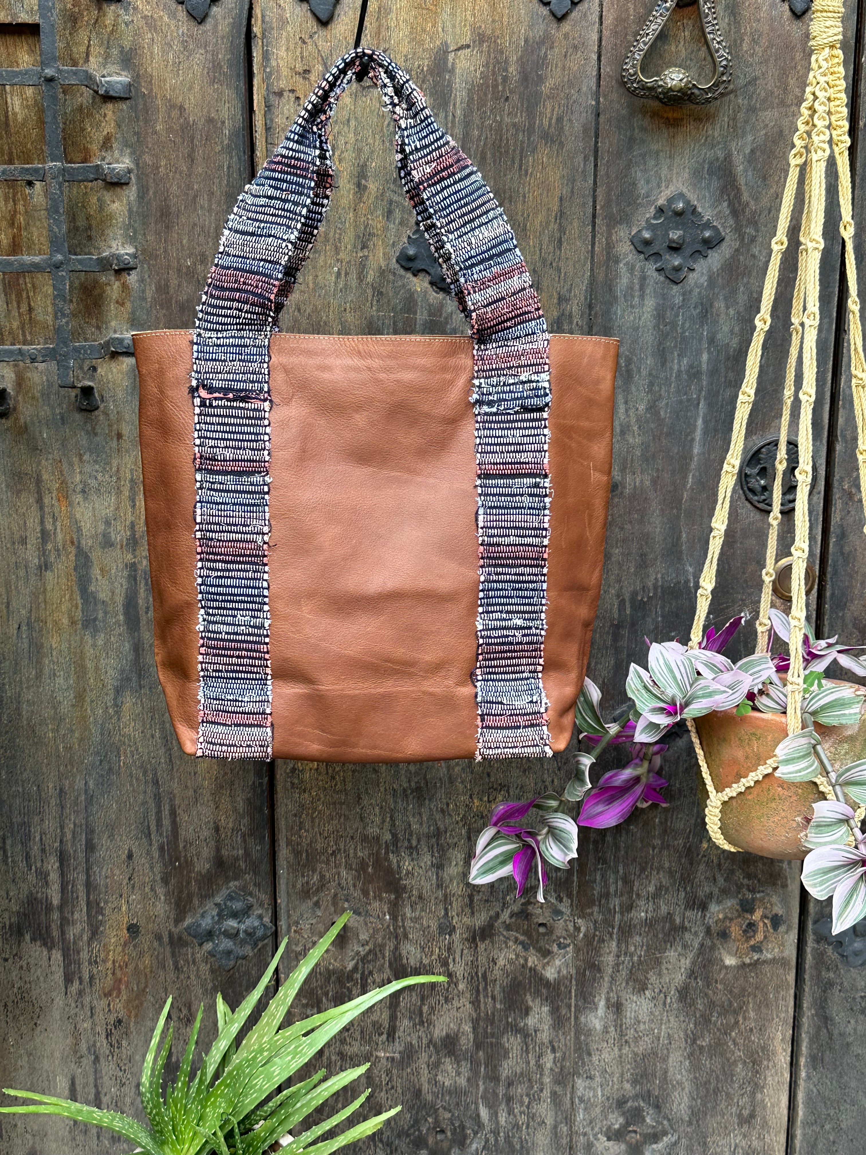 Our Wanderer Tote is truly a work of unique art made with the highest quality genuine full hide leather and a handwoven strap. These straps are made from traditional mayan belts, used to cinch the corte skirt of the typical mayan outfit, "traje".