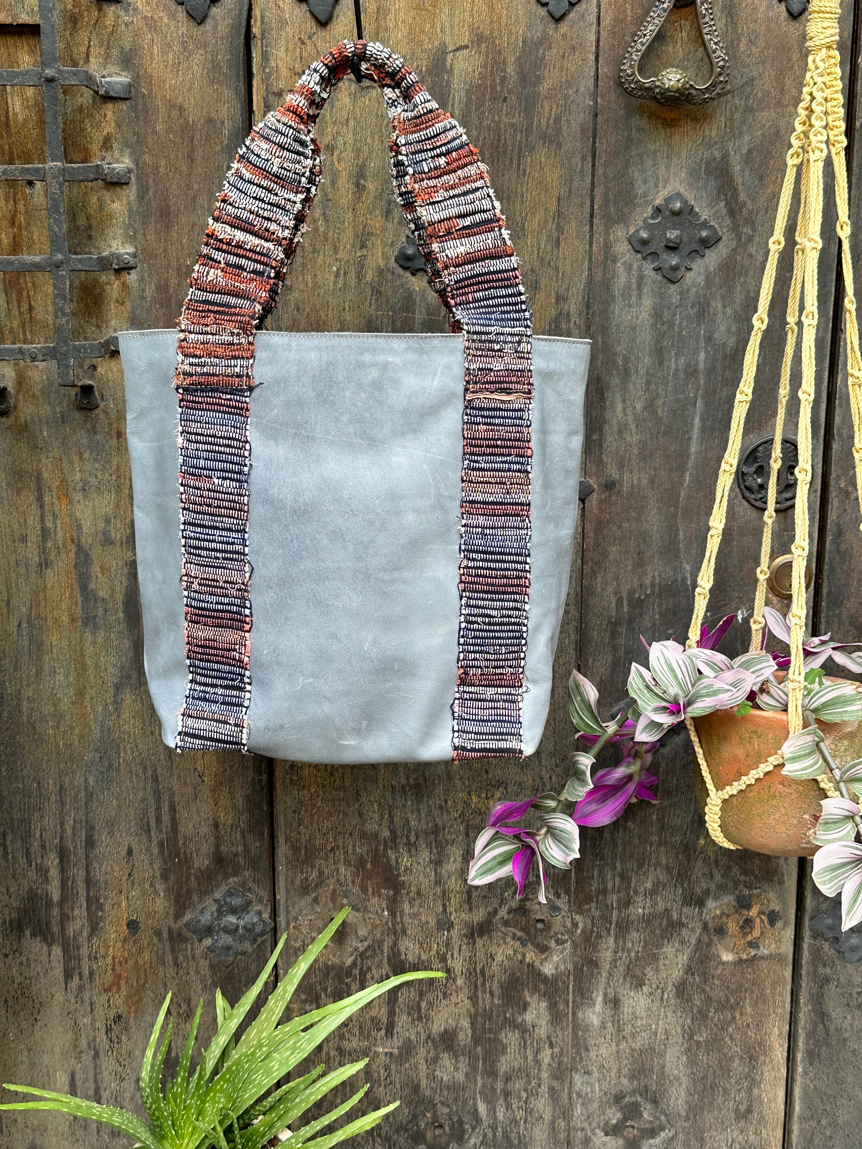 Our Wanderer Tote is truly a work of unique art made with the highest quality genuine full hide leather and a handwoven strap. These straps are made from traditional mayan belts, used to cinch the corte skirt of the typical mayan outfit, "traje".