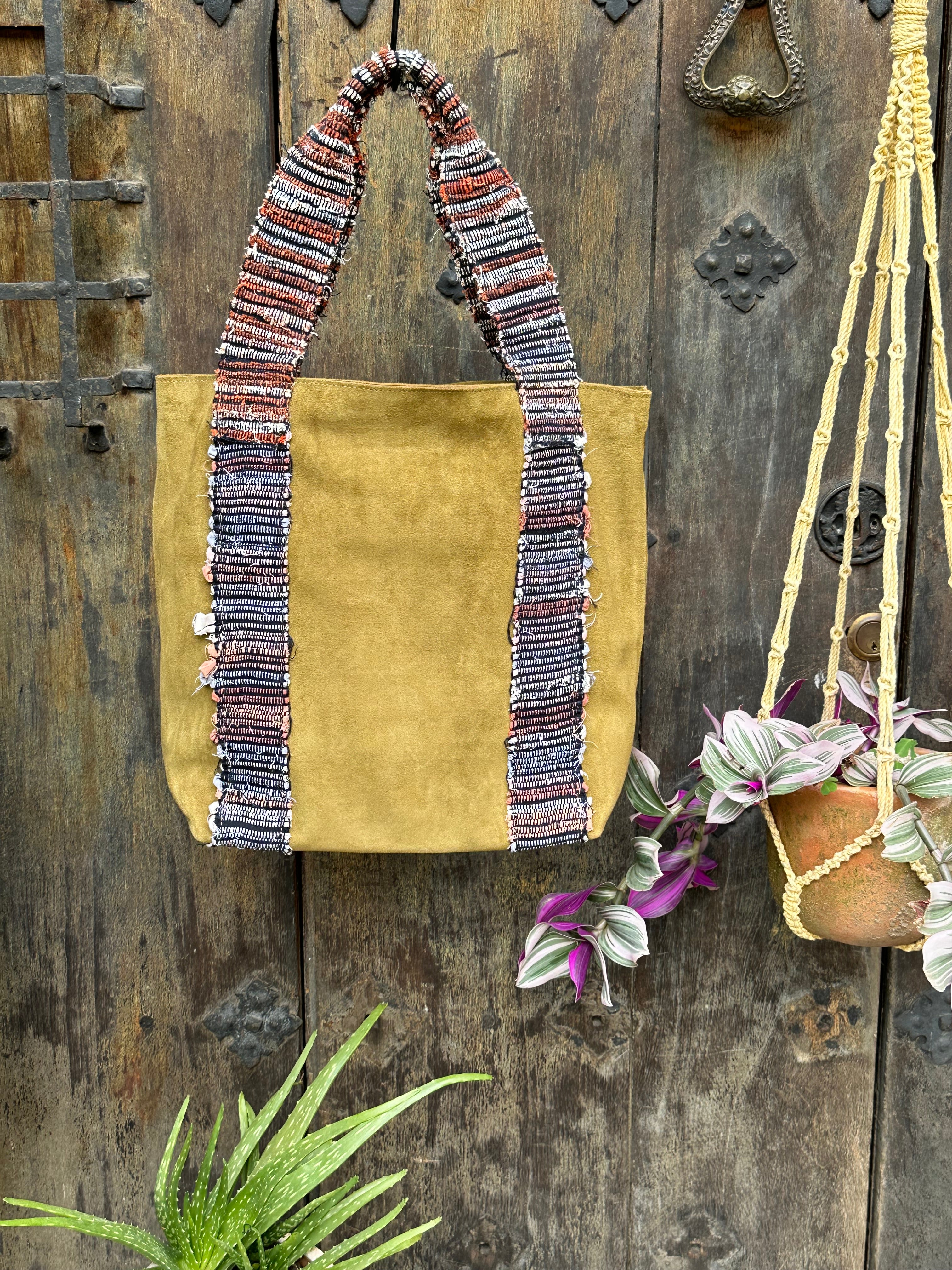 Our Wanderer Tote is truly a work of unique art made with the highest quality genuine full hide leather and a handwoven strap. These straps are made from traditional mayan belts, used to cinch the corte skirt of the typical mayan outfit, "traje".