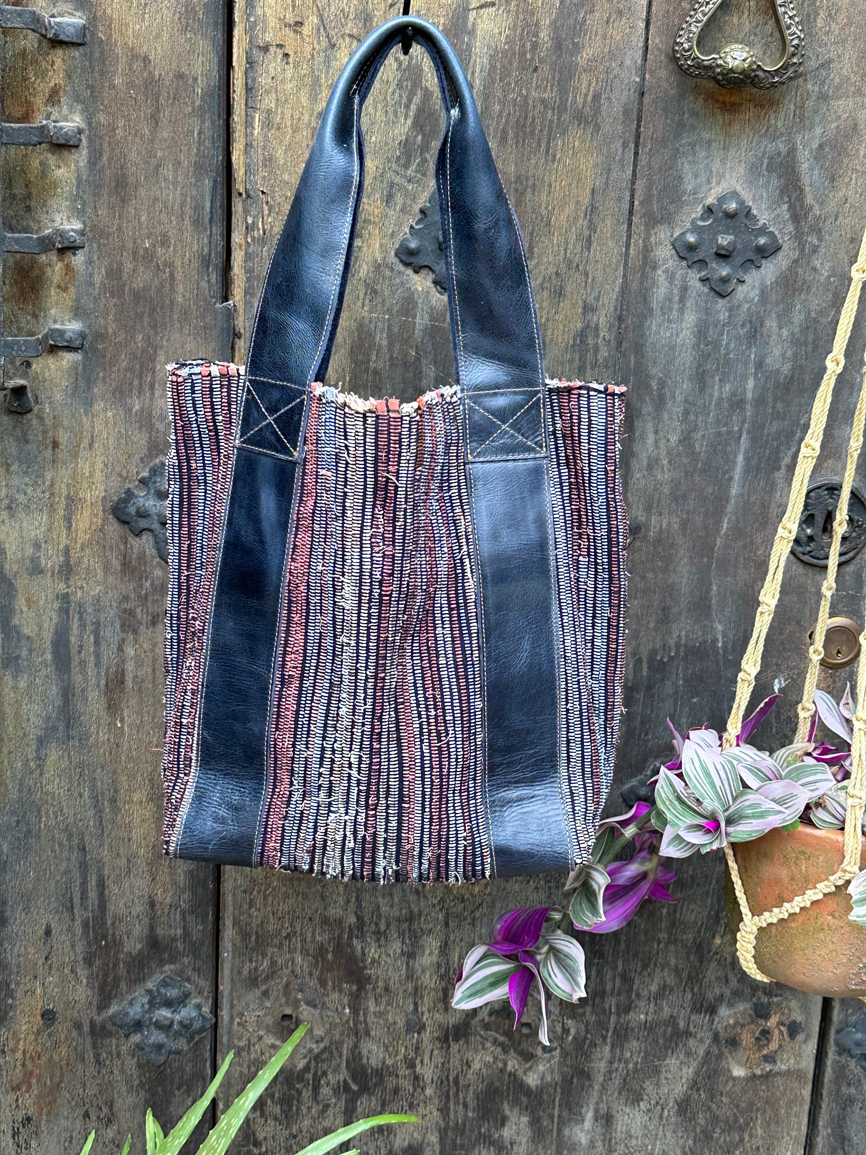 Our Wanderer Tote is truly a work of unique art made with the highest quality genuine full hide leather and a handwoven strap. These straps are made from traditional mayan belts, used to cinch the corte skirt of the typical mayan outfit, "traje".
